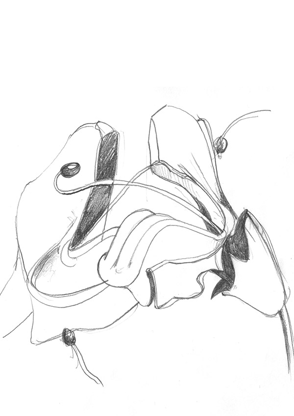 Peter Pfister, Zeichnunglehrer und Künstler beschäftigt sich seit geraumer Zeit mit dem Aufbau von Organismen. Dabei sind Gestalt und Struktur sein Leitmotiv. Mit dem simplen Titel «Anatomie» zeigt er zum ersten Mal in Form von Wandmalereien einige seiner Entwürfe, welche mit einem Graphitstift in wenigen, gekonnten Strichen aufgetragen sind. So klar und schnörkellos die Überschrift zur Ausstellung, so direkt ist seine Einladung an den Betrachter, die Kunst auf Wände von Privat- und Geschäftsräume zeichnen zu dürfen. Pfisters Art ist an kein Format gebunden. Deshalb funktioniert es durchaus als Idee, als Aktion und hat das Potential, in Eigendynamik weite Kreise zu ziehen.